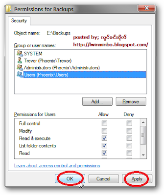 ေအာက္ကပံု အတို္င္းေပၚလာရင္ A ေနရာမွာ ျပထားတဲ့ အတိုင္း Users လို႔ ရိုက္ထည့္ပါ..။ ျပီးရင္ B ေနရာကို ကလစ္ေပးပါ..။